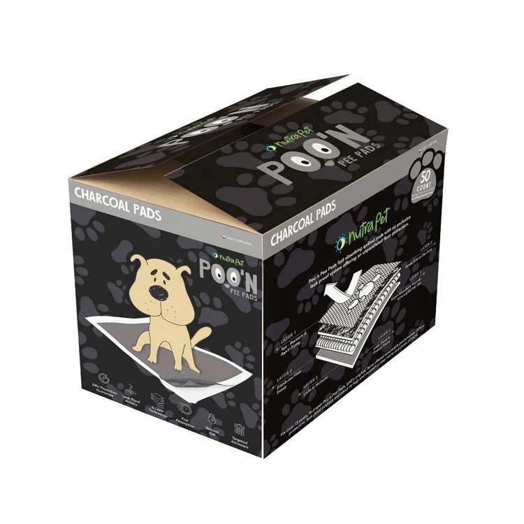 Nutrapet Poo N Pee Charcoal Training Pee Pads For Dogs – Charcoal:Maintaining a clean, pleasant home can be challenging when you have a pet. Four Paws makes safe, effective products to clean your home, help train your dog, and generally make life easier.Our PooN pee Pads are treated with a special additive designed to attract your dog when nature calls. Made with a 5-ply leak-proof Floor Armor System, the special quilted top locks in moisture and neutralizes odors, while the leak-proof liner protects floors and carpets. PooN Pads come in a variety of sizes and styles to fit every dog.