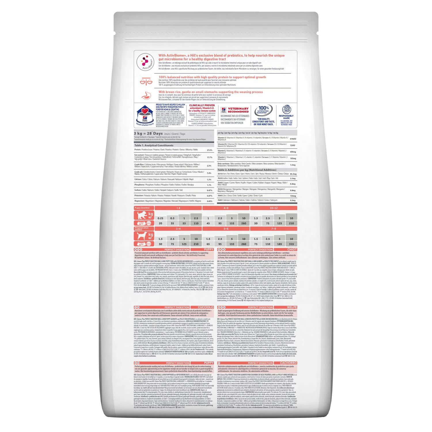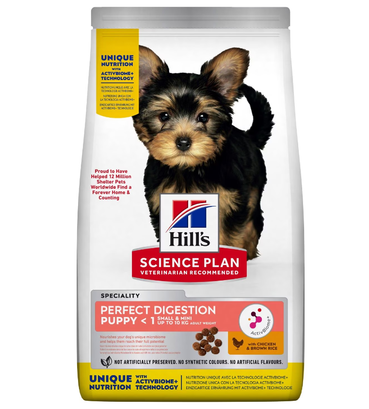 Hill’s Science Plan PERFECT DIGESTION SMALL & MINI Puppy food with Chicken & Brown Rice Contains ActivBiome+, a Hill’s exclusive blend of prebiotics to nourish your dog’s unique microbiome and help them reach their full potential.